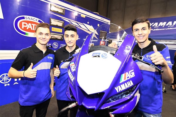 Presentata ufficialmente sul palco del Motor Bike Expo di Verona la formazione dei piloti supportati da Yamaha nello Junior Team AG Motorsport Italia. A stringere la mano dei tre protagonisti c’erano Fabio Albertoni e Luca Lussana, responsabili racing Yamaha Motor Europe. Ag Motorsport Italia, partner Yamaha da diversi anni, si occupa dei progetti sportivi della casa dei tre diapason dedicati ai giovani nel mondo della velocità. La società bolognese promuovere i giovani talenti provenienti dalle Cup R125, R3 Yamaha ed è parte integrante del progetto bLU cRU, programma sviluppato da Yamaha per la crescita dei giovani piloti.