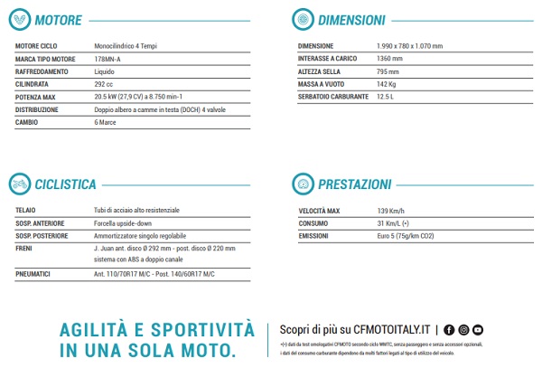 CFMoto 300NK 2021 scheda tecnica