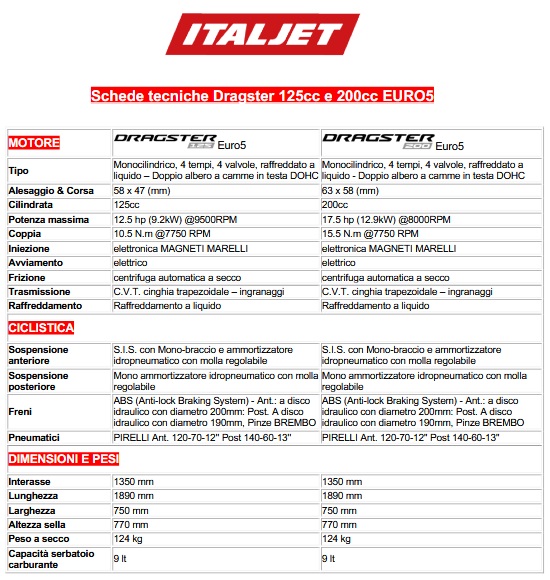 NUOVO ITALJET DRAGSTER 2022 scheda tecnica