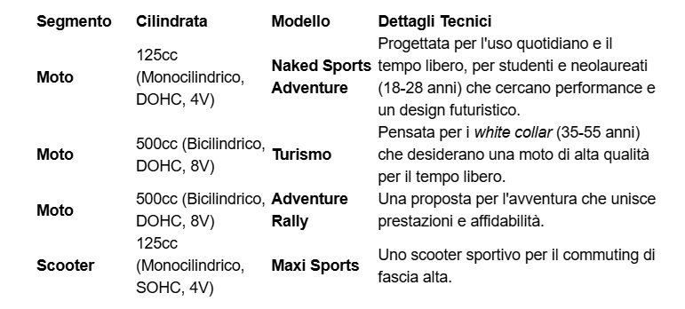 La commercializzazione partirà dalla Cina per il test di qualità iniziale (IQS), per poi espandersi rapidamente in Europa e nell'ASEAN, con l'obiettivo ambizioso di raggiungere 4.000 unità vendute 125 cc, 1.500 cc, e 500 cc nel primo anno di attività.