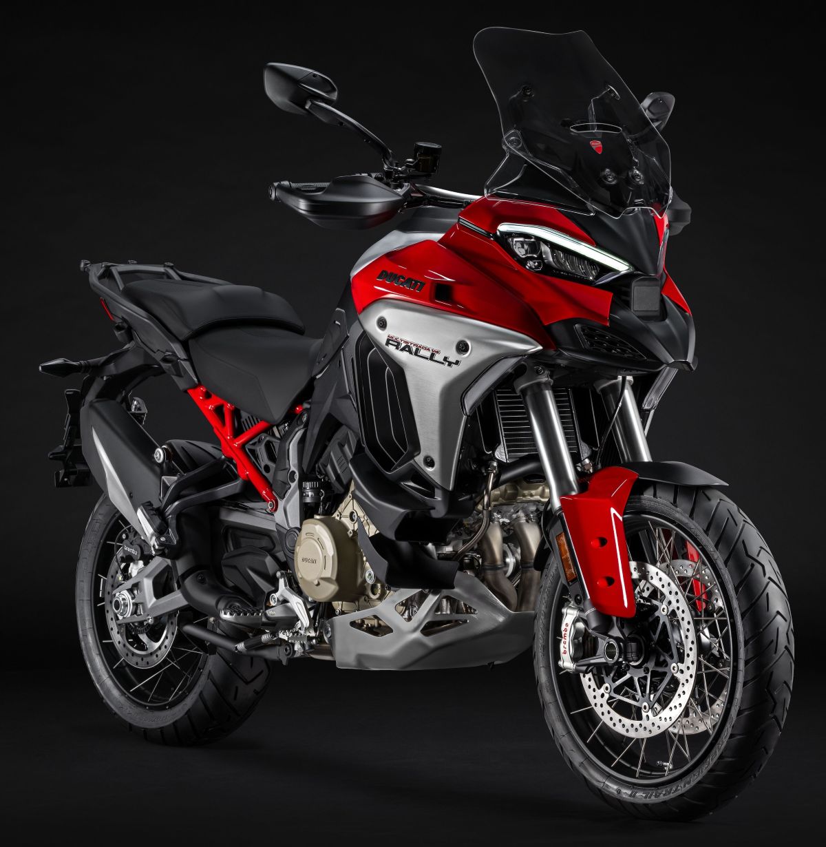 La nuova Ducati Multistrada V4 Rally è proposta in tre diversi allestimenti: Radar, dotato di funzionalità di Adaptive Cruise Control, Blind Spot Detection e Forward Collision Warning, Adventure Travel & Radar, che aggiunge le valigie laterali in alluminio e le selle pilota e passeggero riscaldate, mentre la Full Adventure completa quest’ultimo equipaggiamento con il silenziatore Akrapovic omologato e il parafango anteriore in fibra di carbonio.