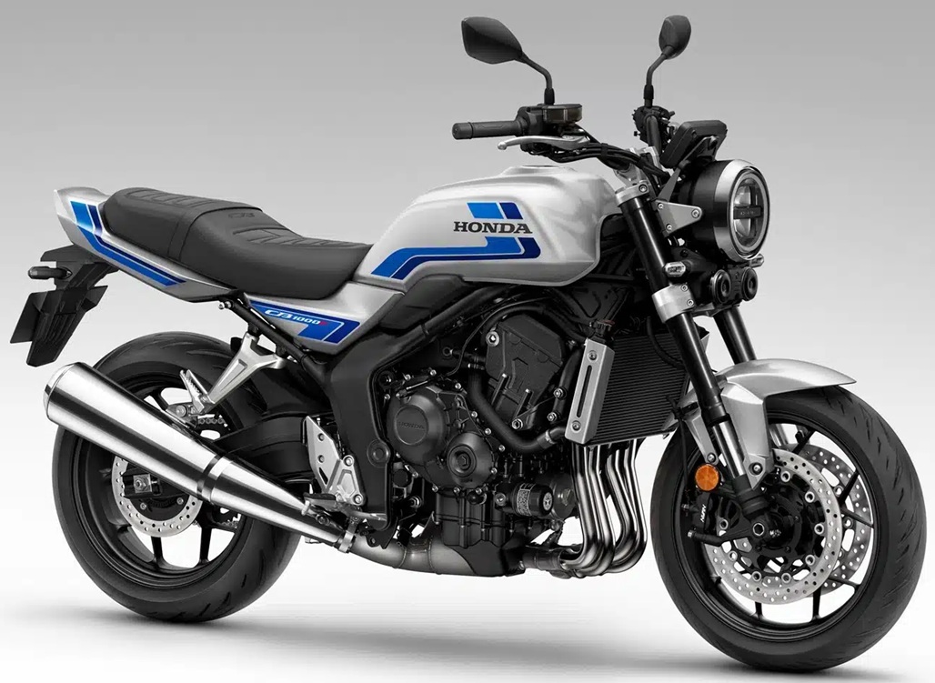 La CB1000F 2026 sarà disponibile in tre varianti cromatiche: Wolf Silver Metallic con frangia blu, Wolf Silver Metallic con frangia grigia e Graphite Black.