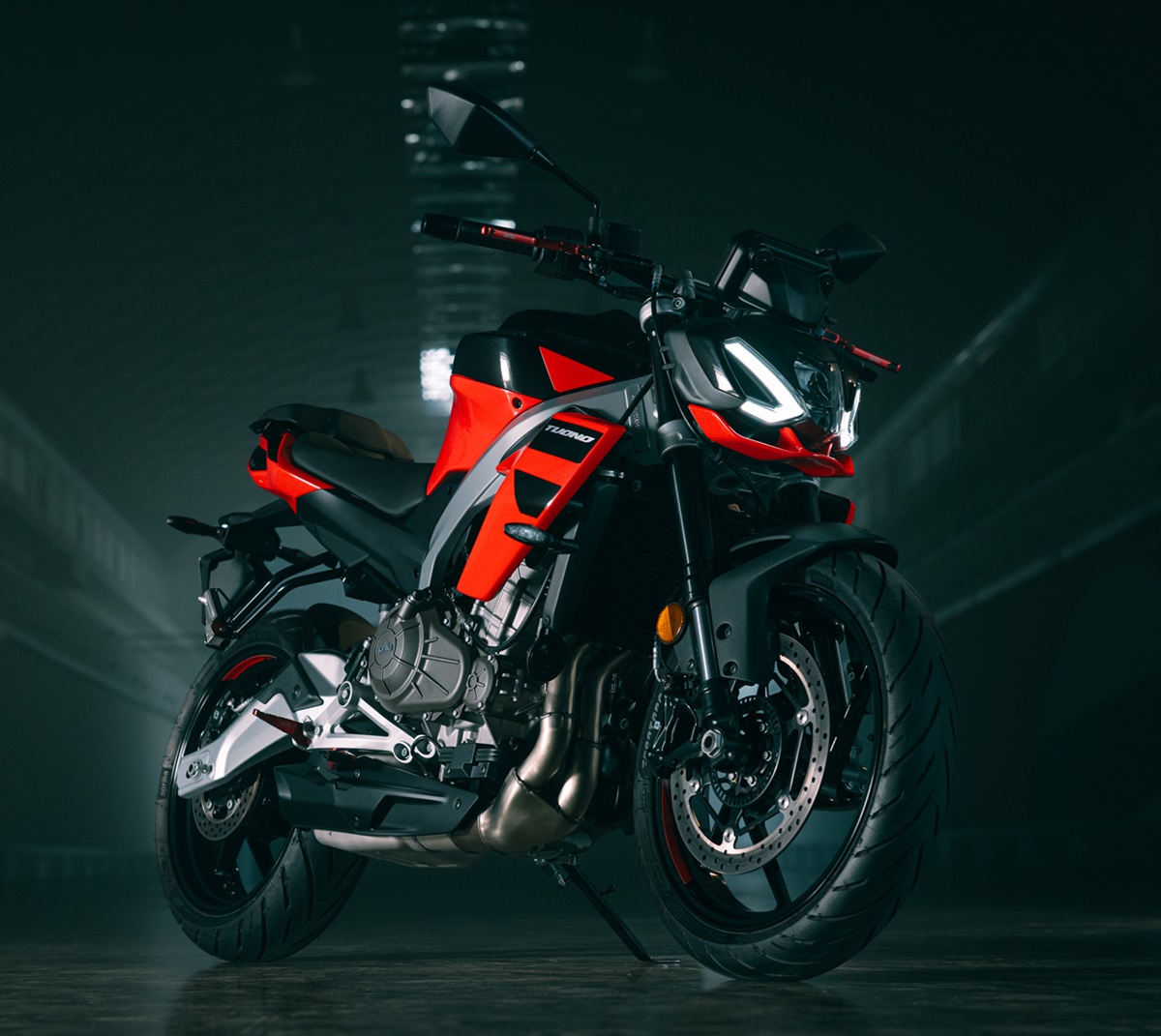 Aprilia Tuono 457 è proposta in due varianti grafiche. La livrea Piranha Red propone i colori tipici della storia di Aprilia, il nero e il rosso, che esaltano la sportività di Tuono 457.