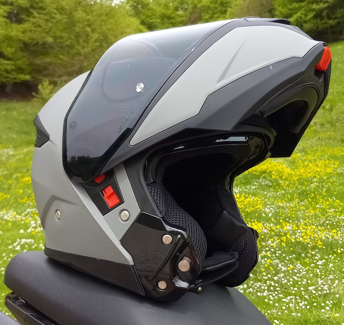 Peso: Il peso dichiarato è di circa 1750±50 gr, un valore standard per un casco modulare in termoplastica con doppia visiera.