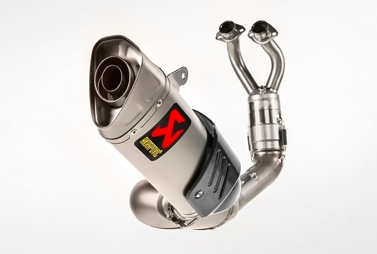 Realizzato con una fodera e un fondello in titanio leggero di massima qualità per la marmitta, uniti a un tubo di raccordo e a collettori in acciaio inossidabile, l’ultimo prodotto di Akrapovič pesa 0,7 kg in meno rispetto allo scarico di serie. Questo prodotto innovativo è un sistema di scarico completo omologato EC/ECE, con convertitore catalitico, che consente al sistema di rispettare le attuali norme Euro5. La versione omologata consente di ottenere un miglioramento nelle prestazioni di 1,5 kW (2.0 hp) a 9.200 giri/min e ha registrato +1,1 Nm a 5.000 giri/min durante il test nel dyno Akrapovič rispetto allo scarico di serie standard. A completare il pacchetto vi è il caratteristico suono profondo e nitido di Akrapovič, perfettamente regolato per essere all’altezza delle credenziali sportive della moto.