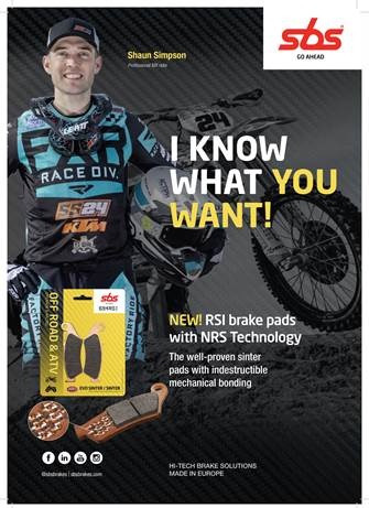 The upgraded RSI compound has been tested for several years and is developed with professional MX-GP rider Shaun Simpson: “Braking is also quite an important part of riding. I like to be in touch with the brakes and I ride a bit on the rear brakes, so it puts a lot of pressure into the system and the heat is just unbelievable. SBS has managed to handle this perfectly and I feel great on track using the upgraded RSI.”
